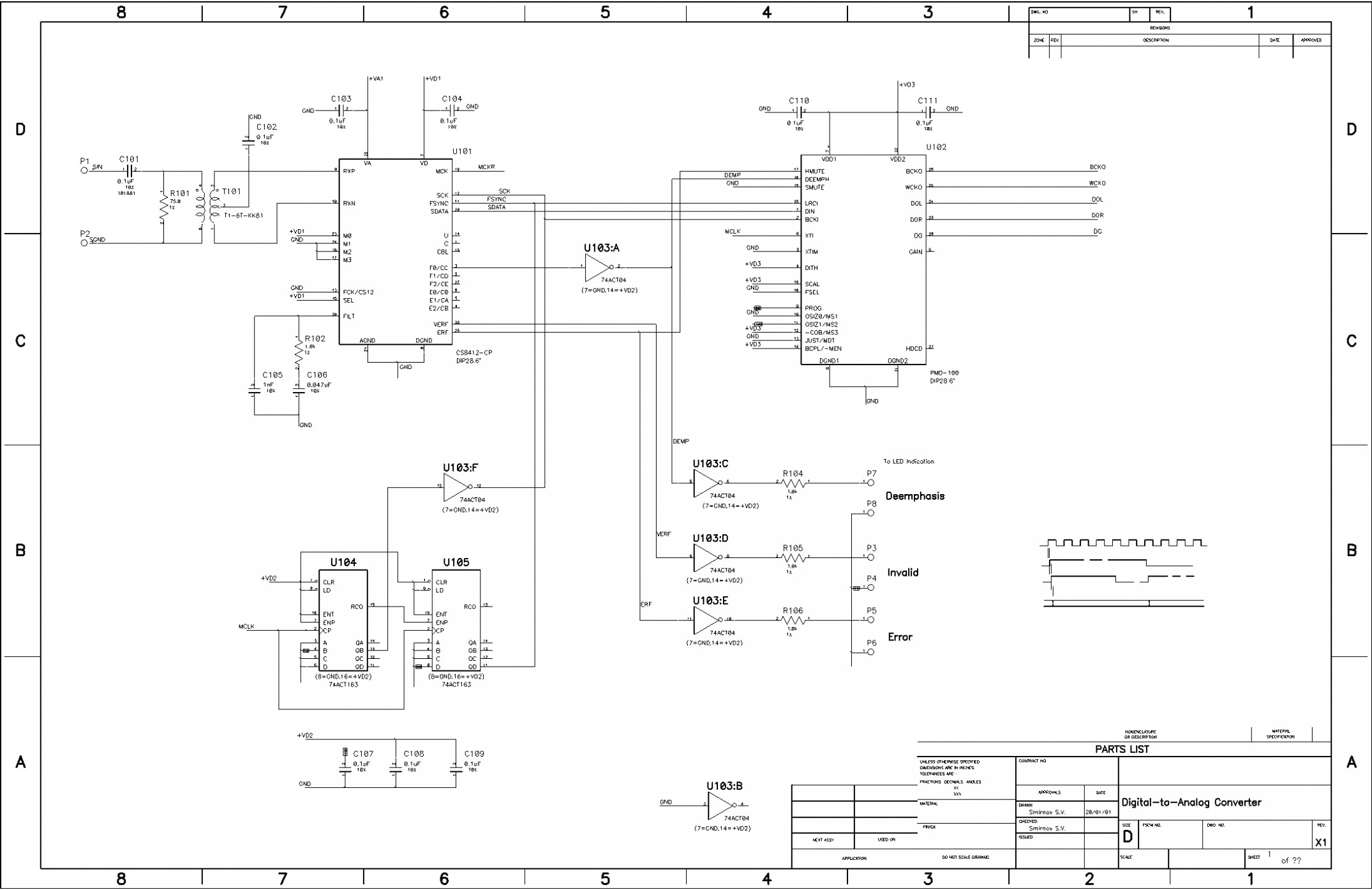 Исходя из анализа различных схем построения выносного блока ЦАП, мной было разработано устройство, сочетающее в себе особенности вариантов (F) и (G) . Основным цифровым источником для ЦАП был признан CD-DA. По состоянию на март 2003 г., проект находится в стадии разводки печатной платы. По завершении конструирования и получении результатов прослушивания, будет представлено подробное описание конструкции. Тем не менее, текущую версию принципиальных схем и описания конструкции можно посмотреть на моем сайте: